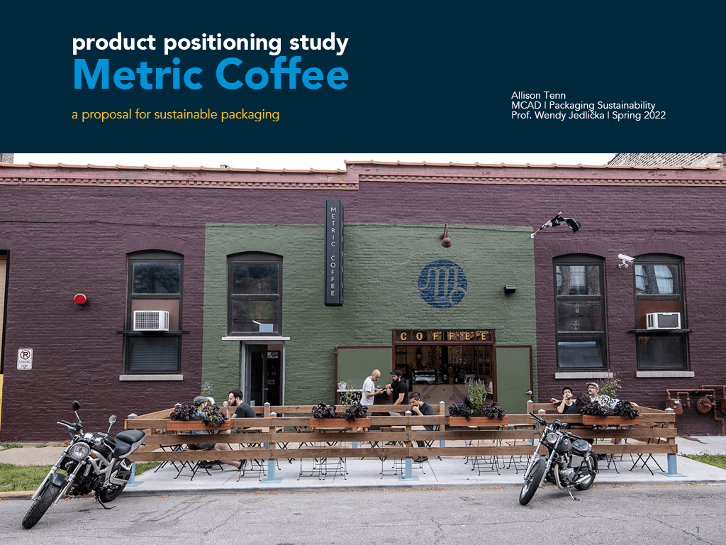 The packaging used for this project was a common resealable lined plastic bag used for whole bean and ground coffee. Independent Chicago roaster Metric was chosen as a stand-in brand due to its preexisting commitment to transparency and ethical sourcing of its product. A small roaster with locally-focused distribution was also chosen to help demonstrate a solution model that could be replicated within similar markets.